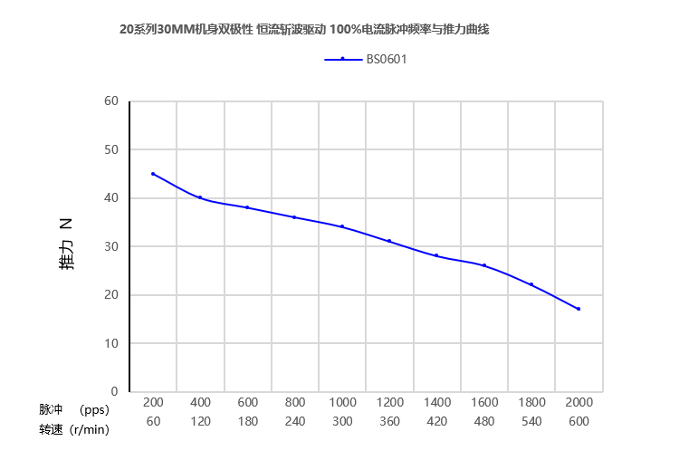 测试条件:恒流驱动,无加速度,2细分,驱动电压24V。