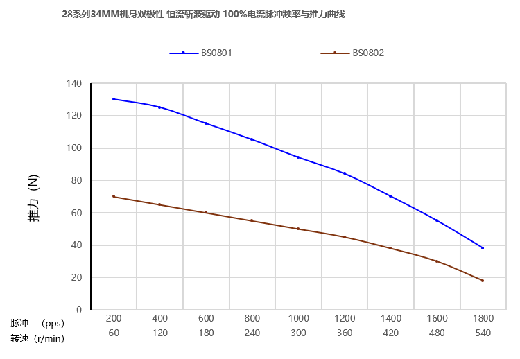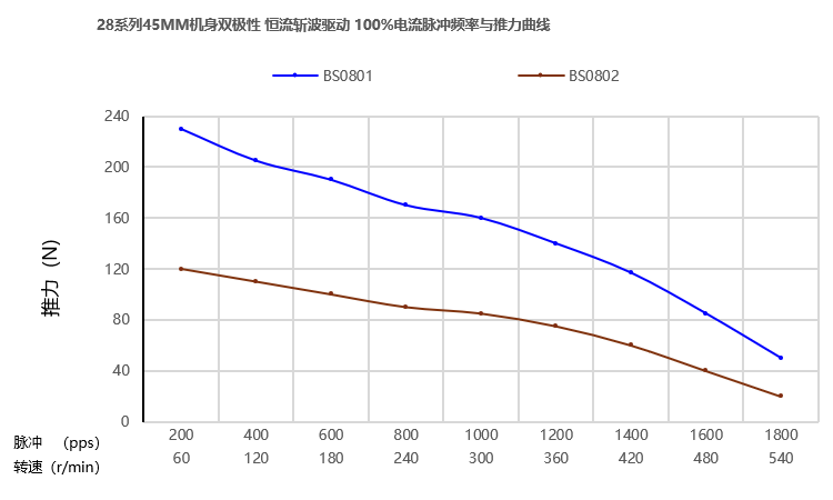 测试条件:恒流驱动,无加速度,2细分,驱动电压24V。
